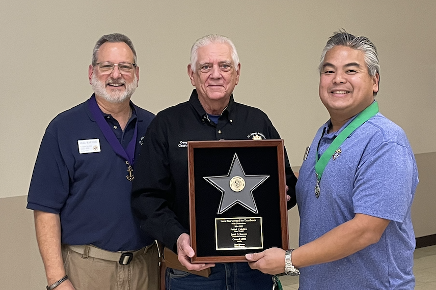 Our Council has once again been Awarded the Highest Honors a Council can obtain. Star Awards recognize outstanding achievement in membership, insurance, programming, and overall operations. Earning a Star Award is the marker of a high preforming Knights of Columbus unit and the goal to which every council, should strive. Congratulations to Our Grand Knight, our Officers and all our Members for a Great Job. (Picture Past Grand Knight Patrick Medina and Grand Knight Greg Martinez received Star Award from District Deputy George Scott.)
