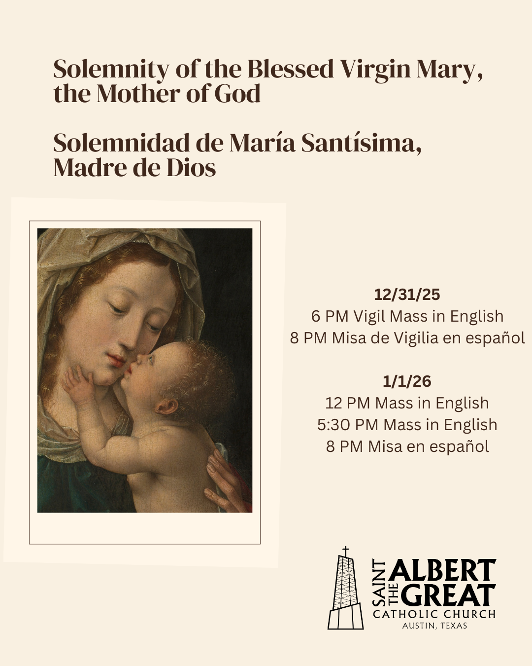 BLESSED VIRGIN MARY, MOTHER OF GOD - MARÍA SANTÍSIMA, MADRE DE DIOS