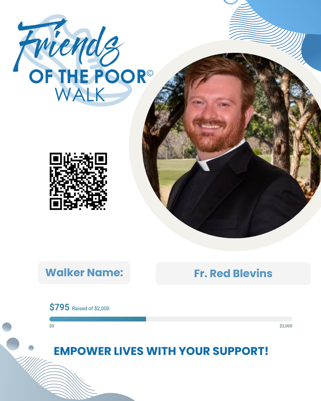 Fr. Red is participating in the Friends of the Poor Walk and is trying to raise $2000! He writes,